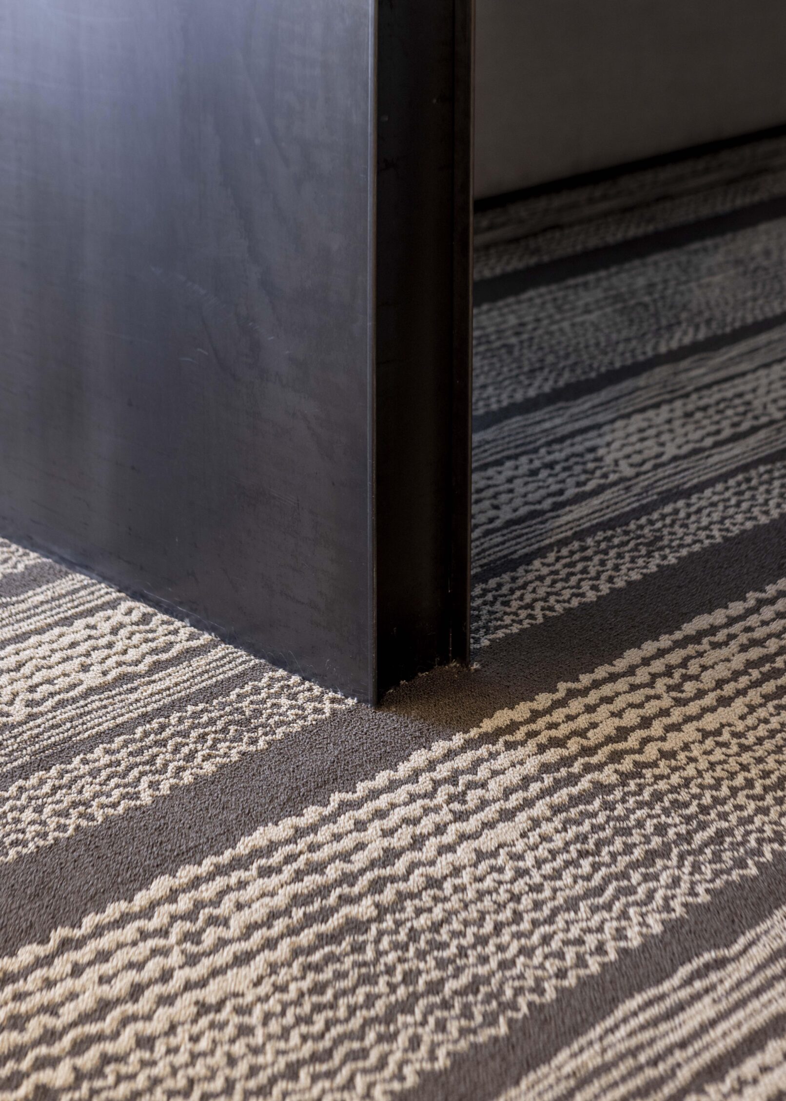 The project was developed by the Estudio Wu team, led by architects Cecilia Timossi, Matías Benítez, and Santiago Bech Rubio, with the collaboration of Blas Rowe. Together, we created an exclusive carpet from our Magna FCX Colorpoint line, featuring a custom design by our team. The color palette was carefully selected to harmonize with the rest of the project, which also included bespoke lighting and furniture. Additionally, our Hard Twist carpet—chosen for its durability and understated look—was installed in elevators and corridors.