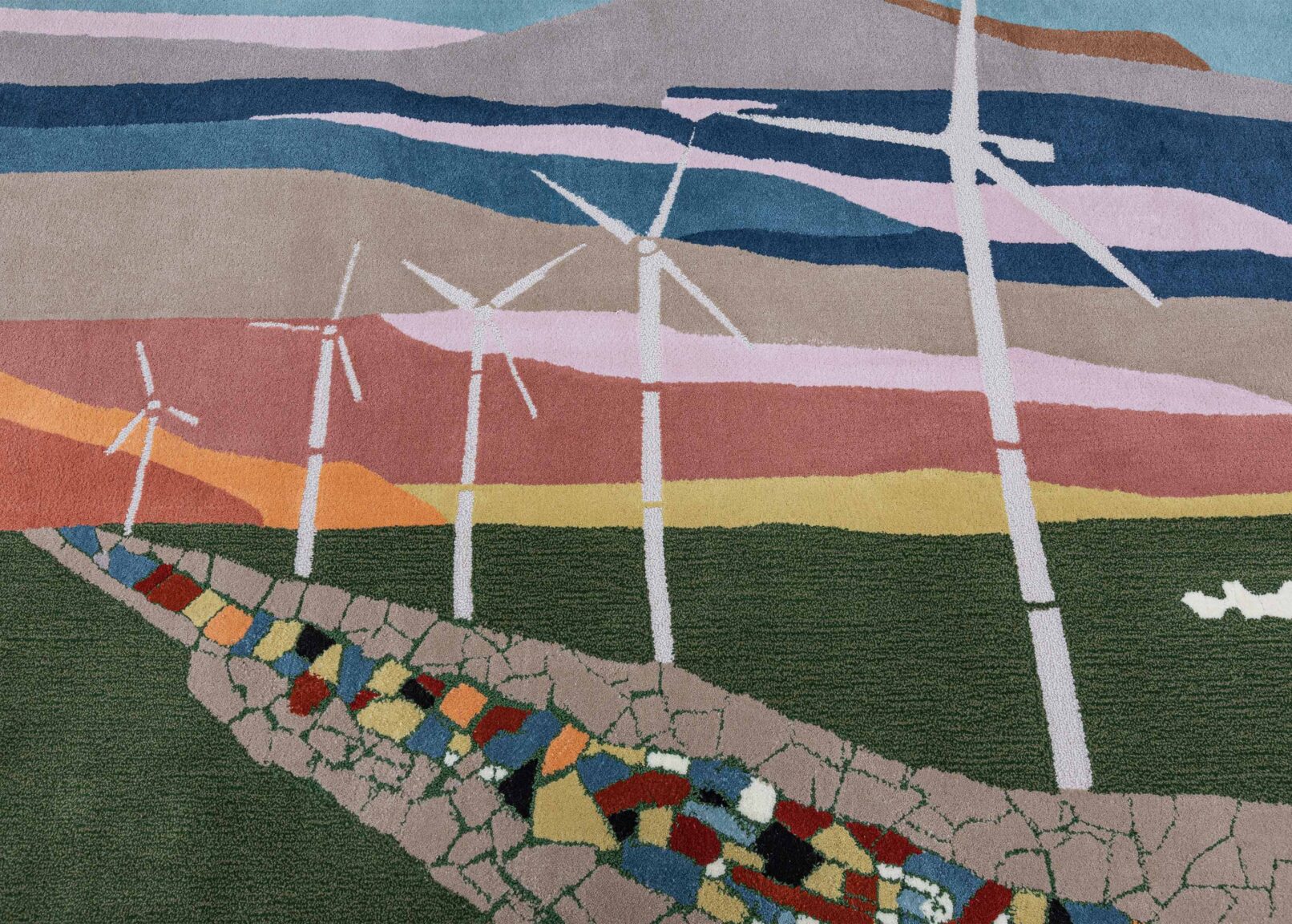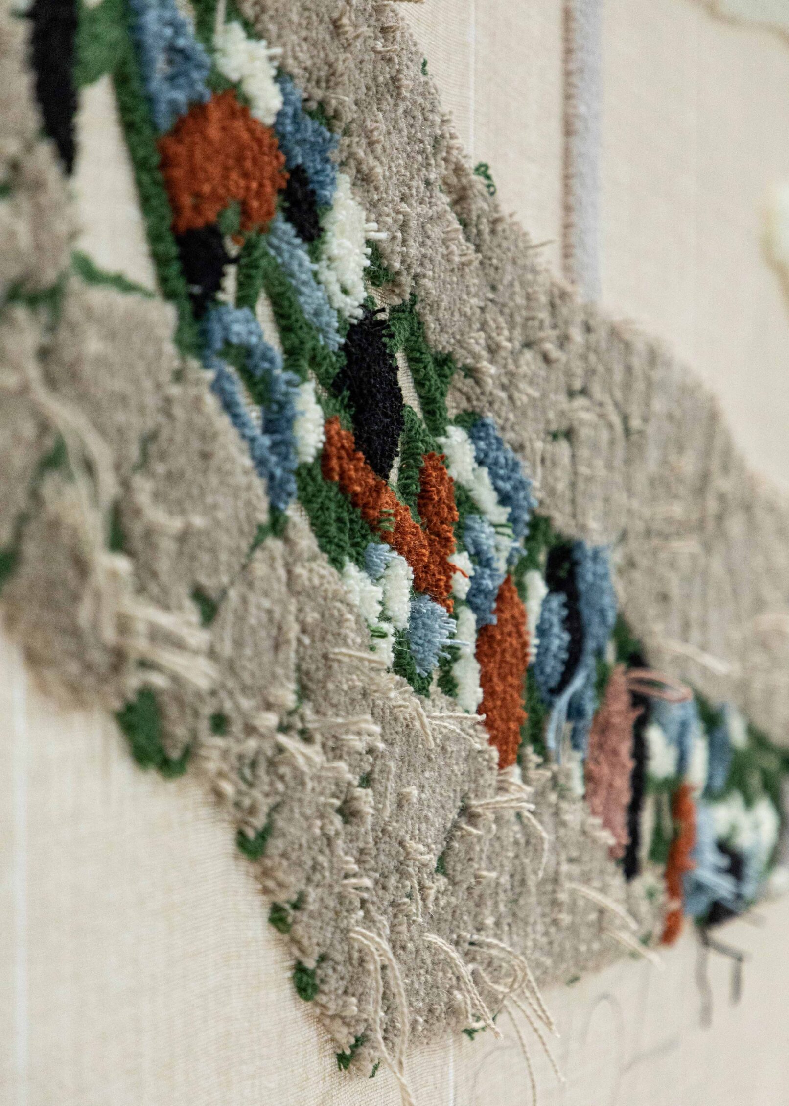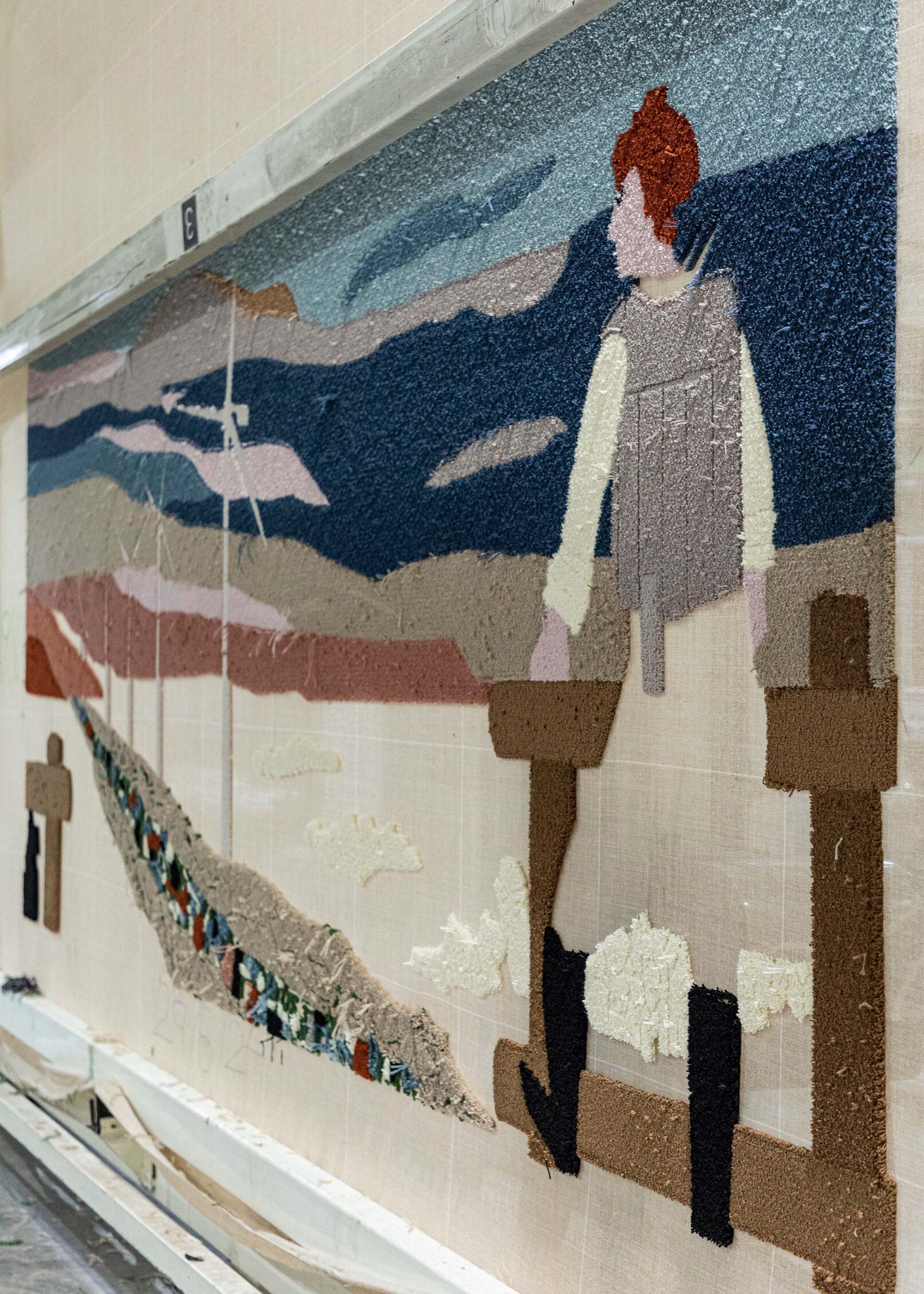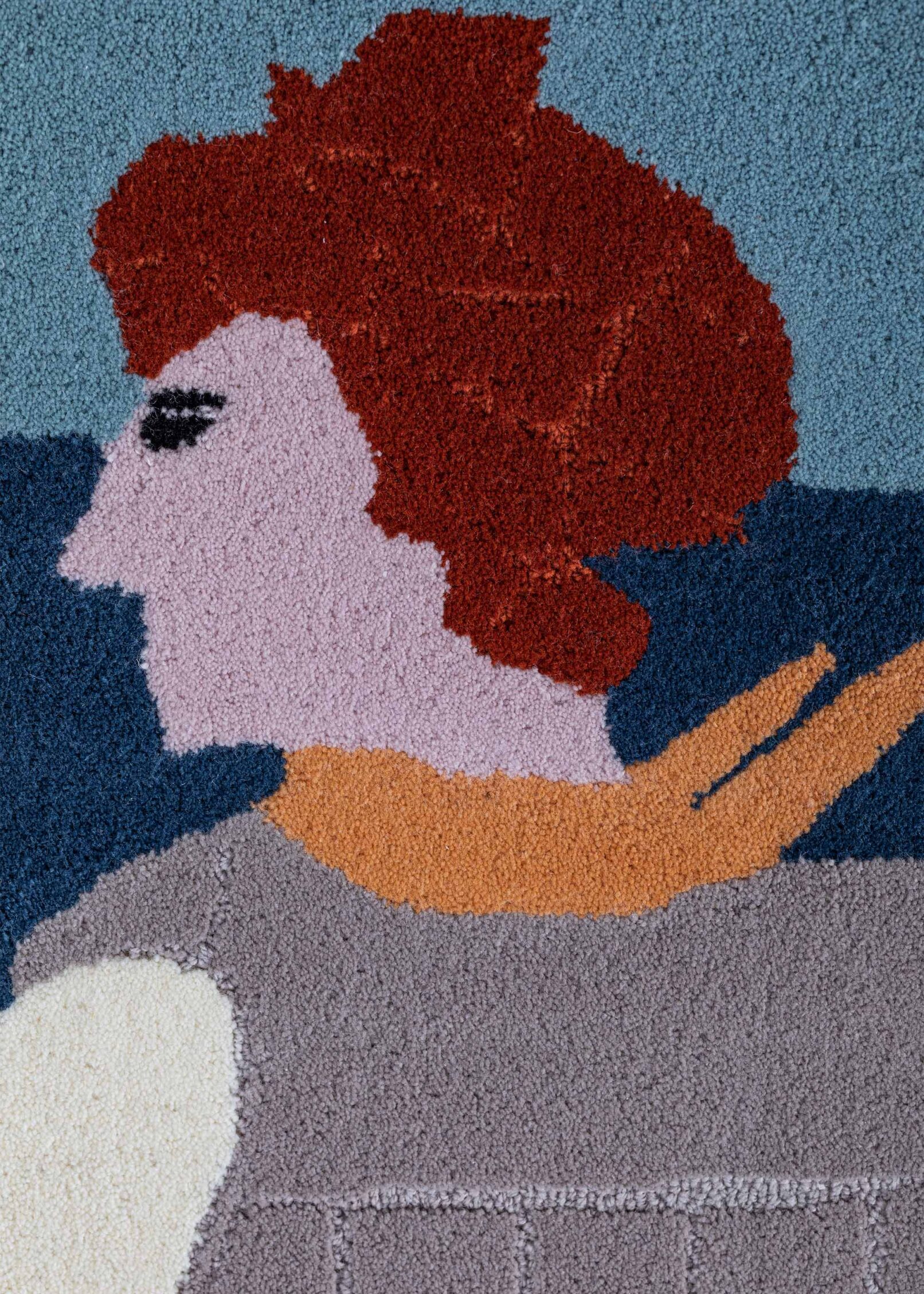 The artist Nushi Muntaabski chose textile as the medium to transfer her work El Descanso to a new format. Created in 2015 for the Experta Seguros building, the original work is a site-specific ceramic mosaic that is part of the Pampa Collection.
