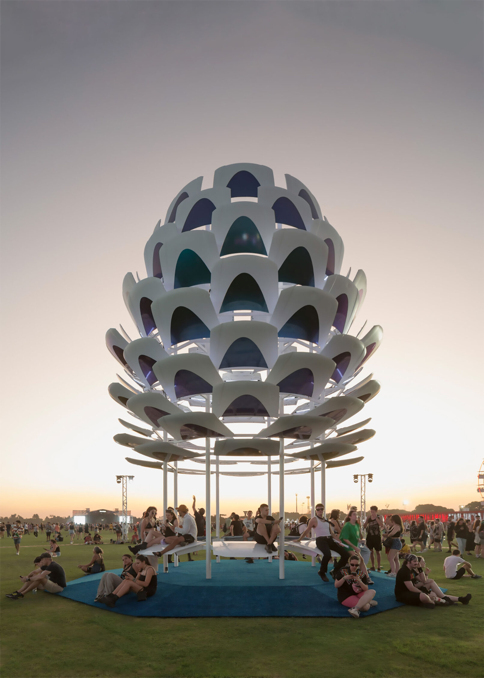 Una instalación, diseñada por Martín Huberman y El Estudio Normal, para el Lollapalooza 2023, en Argentina, que transforma el significado y el uso de un elemento tan mundano y cotidiano como el capot de un automóvil.