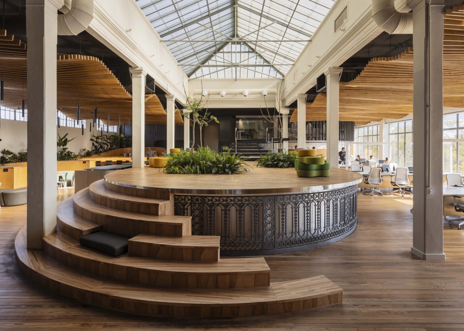 La nueva sede de Gaviglio en San Francisco, Córdoba, fue pensada como un espacio de trabajo colectivo vinculado a la identidad del paisaje rural que rodea a esta empresa con más de 70 años de trayectoria en el sector agropecuario. El proyecto, desarrollado por Furograma Arquitectos, propuso una planta libre elevada, a la altura de las copas de los árboles, en un edificio patrimonial en el centro de la ciudad.