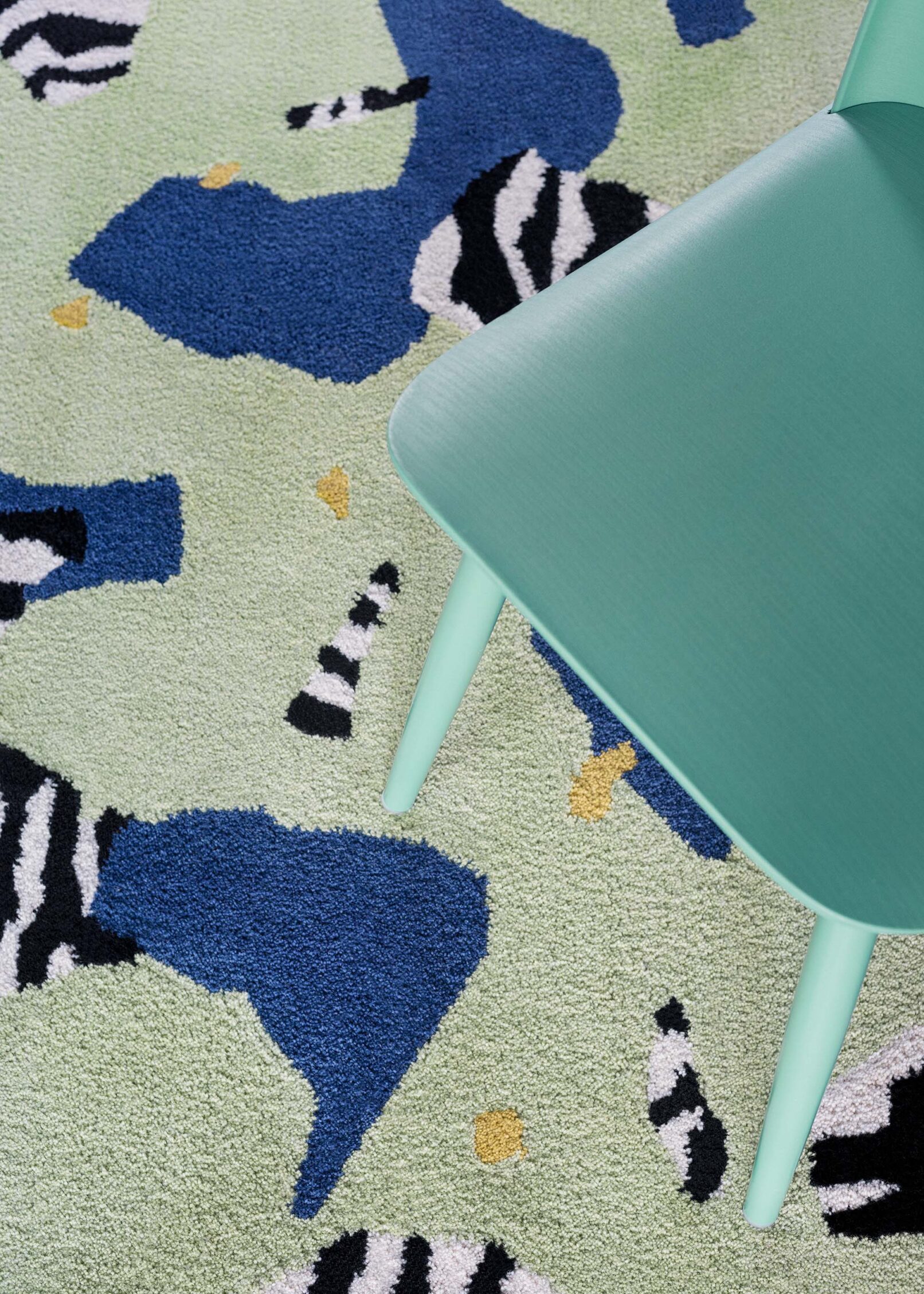 Antonio Carrau comenzó interviniendo tablas de skate y pintando murales como pasatiempo. Al día de hoy ya ha incursionado en diferentes tipos de soportes, desde ropa y telas hasta objetos y papel. La subjetividad que produce una obra de arte es un interés constante en su trabajo. En su carpeta “Número5”, Carrause atreve a agregar color por primera vez a sus diseños en blanco y negro, creando un diseño a partir de contraformas y restos de collages.
