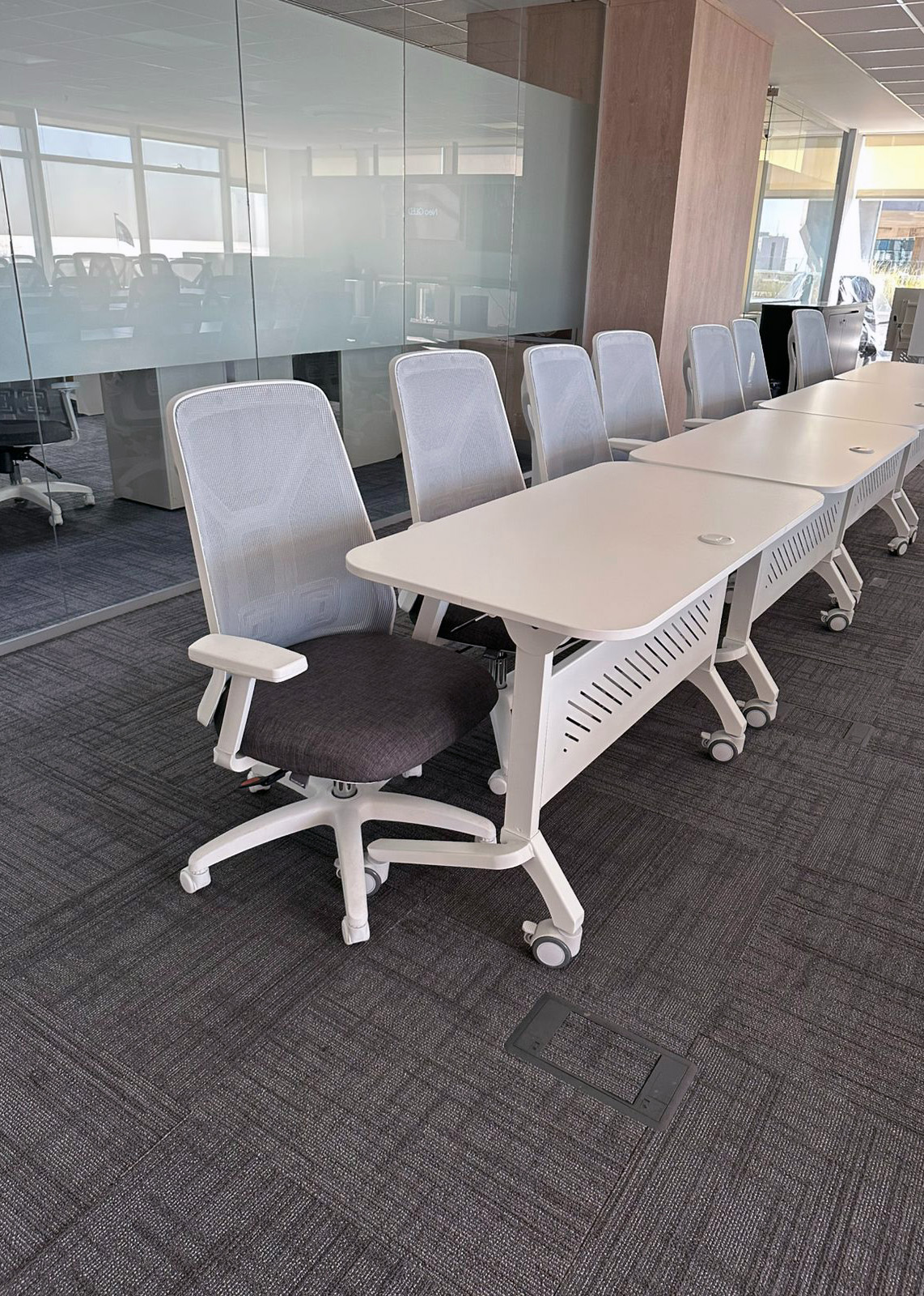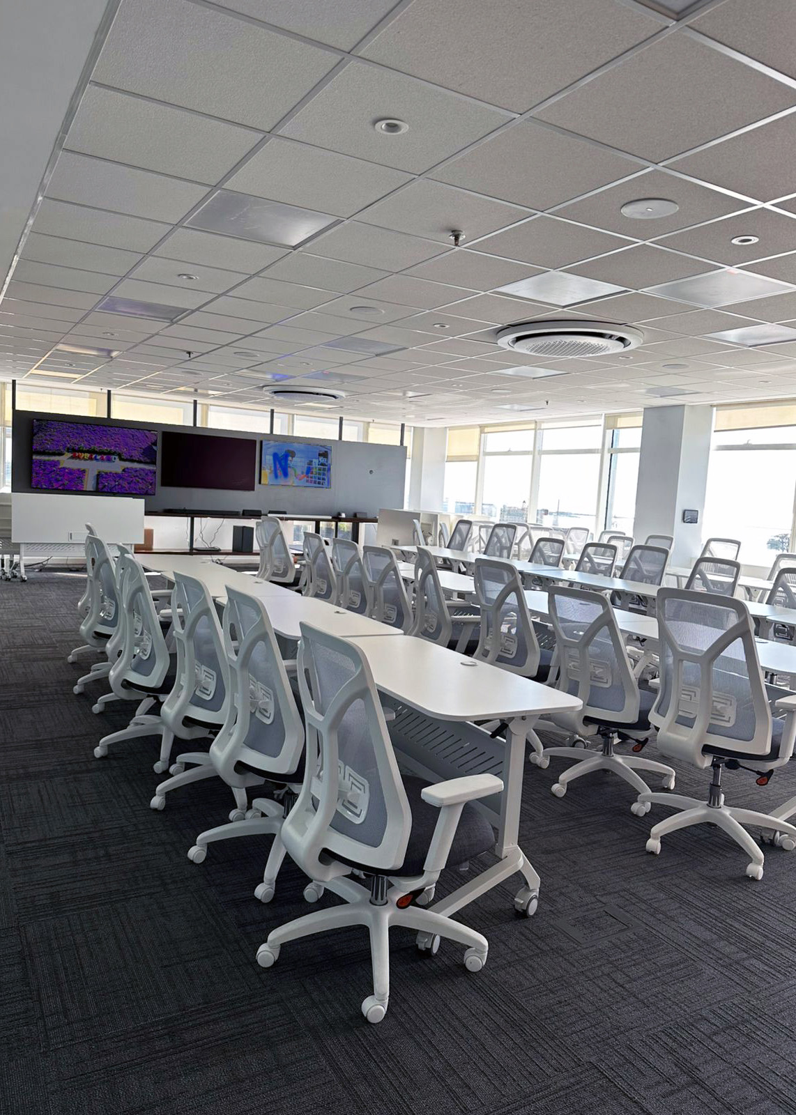 El proyecto estuvo enfocado en modernizar dos plantas de trabajo dentro de una torre icónica de la Ciudad de Buenos Aires, que cuenta con certificación LEED. En ese marco, fuimos convocados para proveer e instalar nuestra alfombra modular Infinity IX04, un diseño de línea de El Espartano, tejido en nylon con textura bouclé multinivel, elegido por el equipo de Samsung por su estética contemporánea y desempeño técnico.