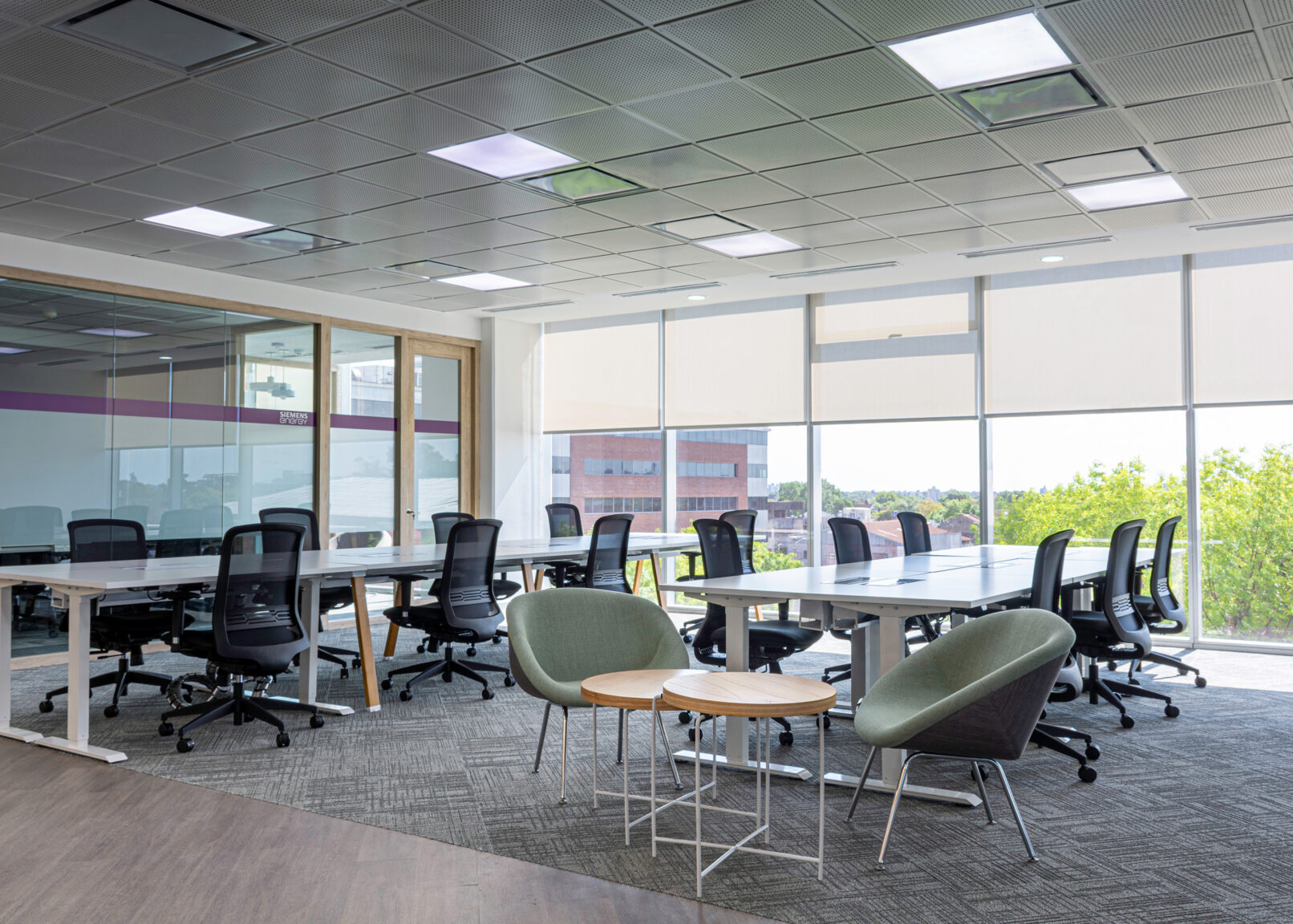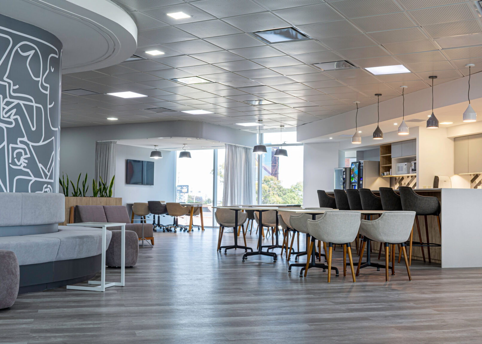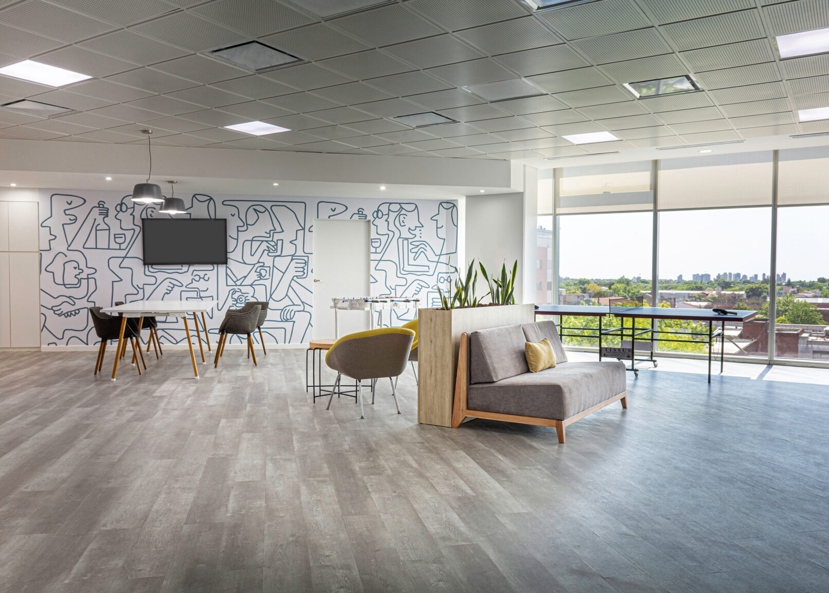 Y en los espacios de recreación instalamos los pisos vinílico Links símil madera que ofrece una solución práctica, de fácil colocación y acabado. Inspirado en la nobleza de la madera, posee una terminación con textura que brinda un aspecto real y aporta calidez visual y sonora al espacio.