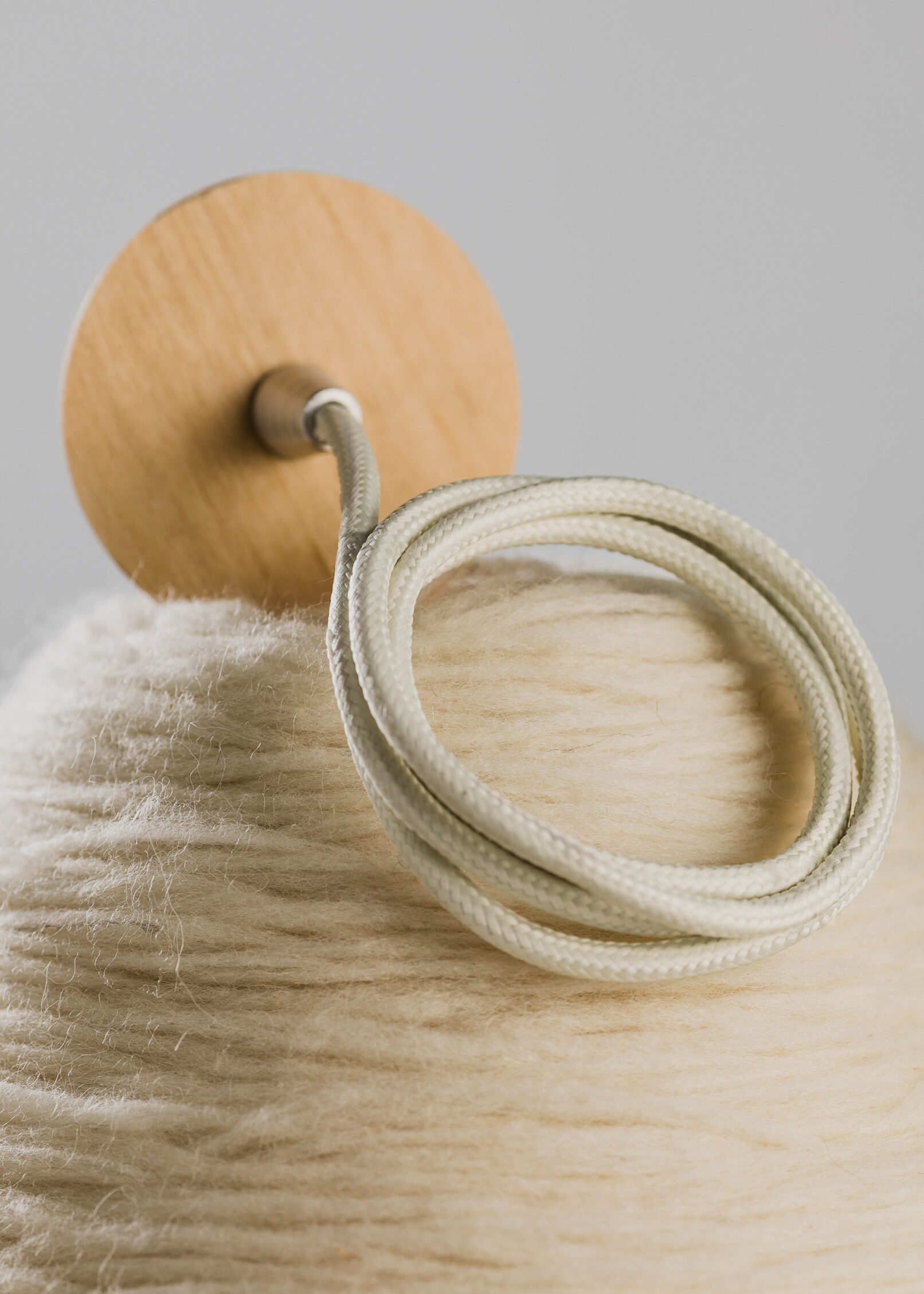 Creada a partir del vellón, la lana en su estado más puro, Vella es cálida por naturaleza. En color crudo y de textura suave y mullida, esta lámpara colgante de formas clásicas e icónicas es ensamblada artesanalmente. Como el vellón que la forma, como su luz, como su sombra. Vella es bella.