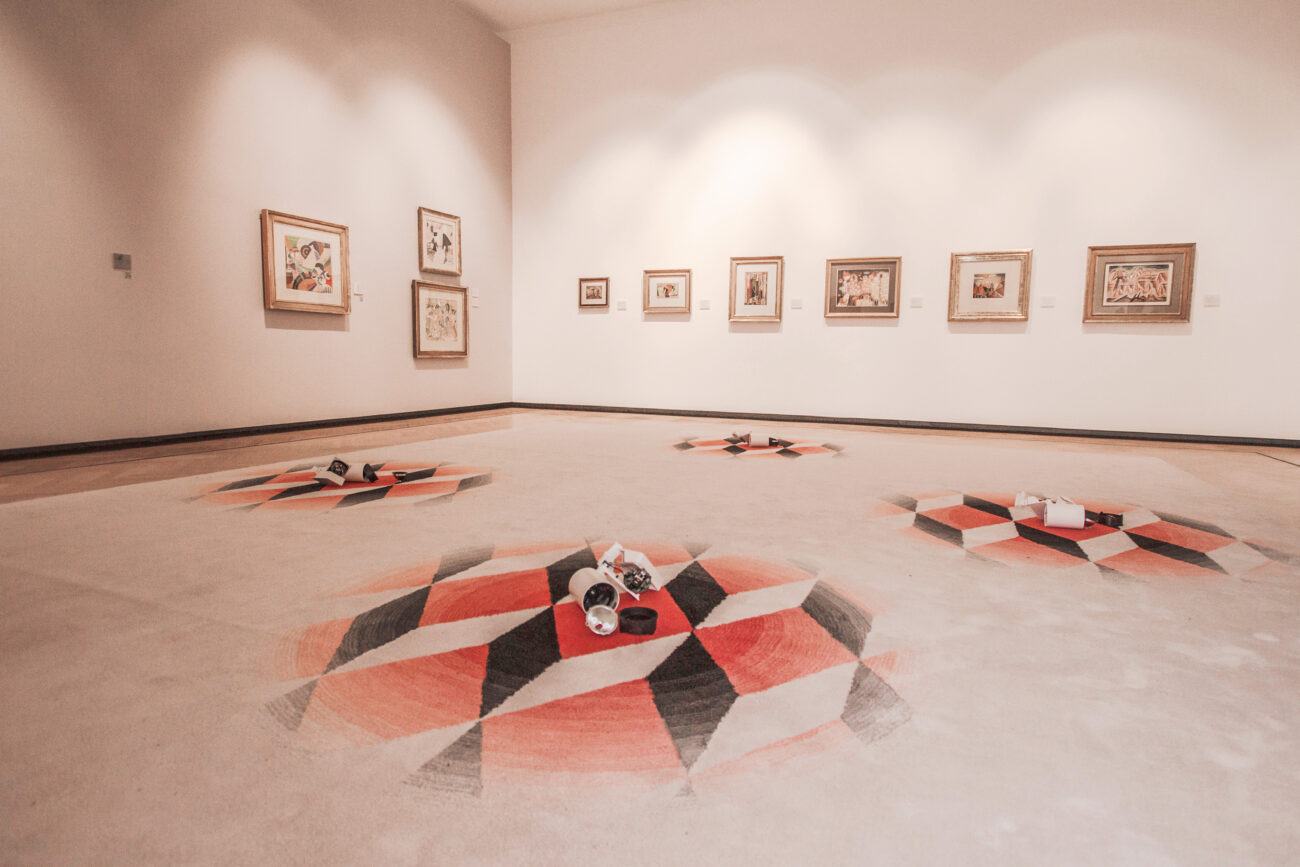 Sobre una alfombra de grandes dimensiones yacen cuatro spots que parecieran haberse caído del techo y destruido. Curiosamente, los cuatro fragmentos iluminados que hubieran generado estos spots sobre la alfombra son lo único que permanece visible de la trama, mientras que el resto parece haberse desvanecido, llevando al espectador a reflexionar sobre la significación y…