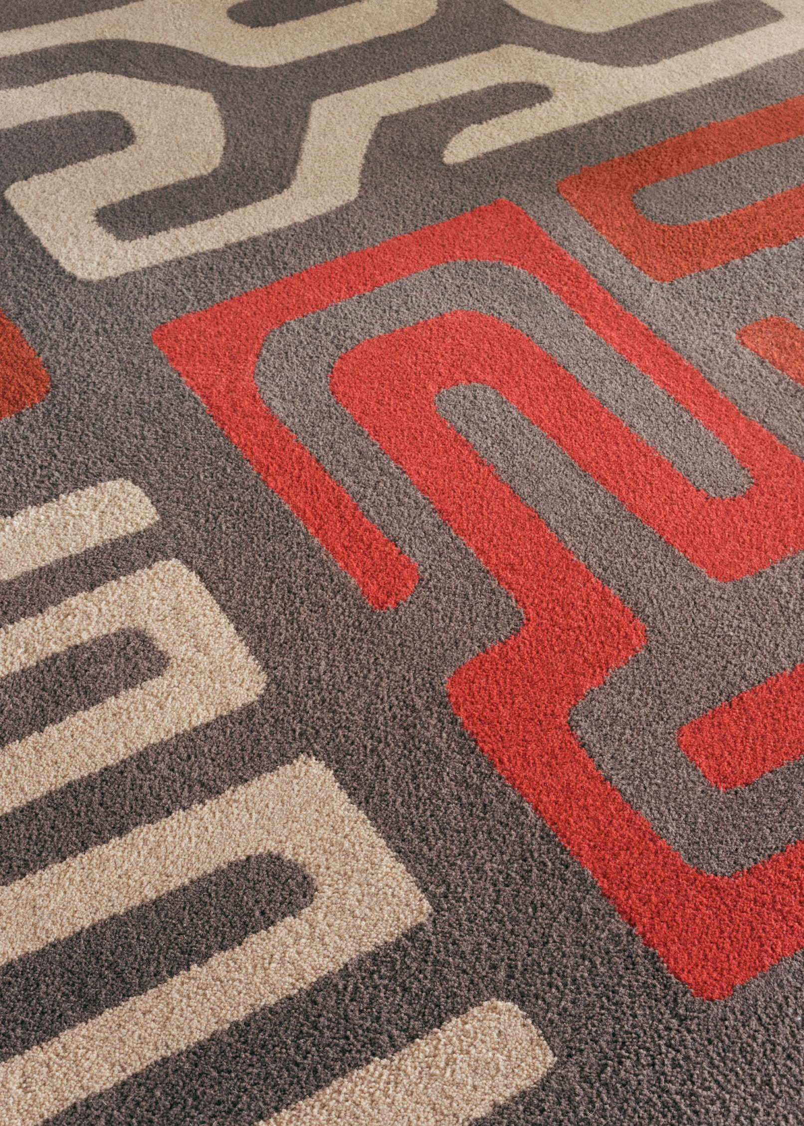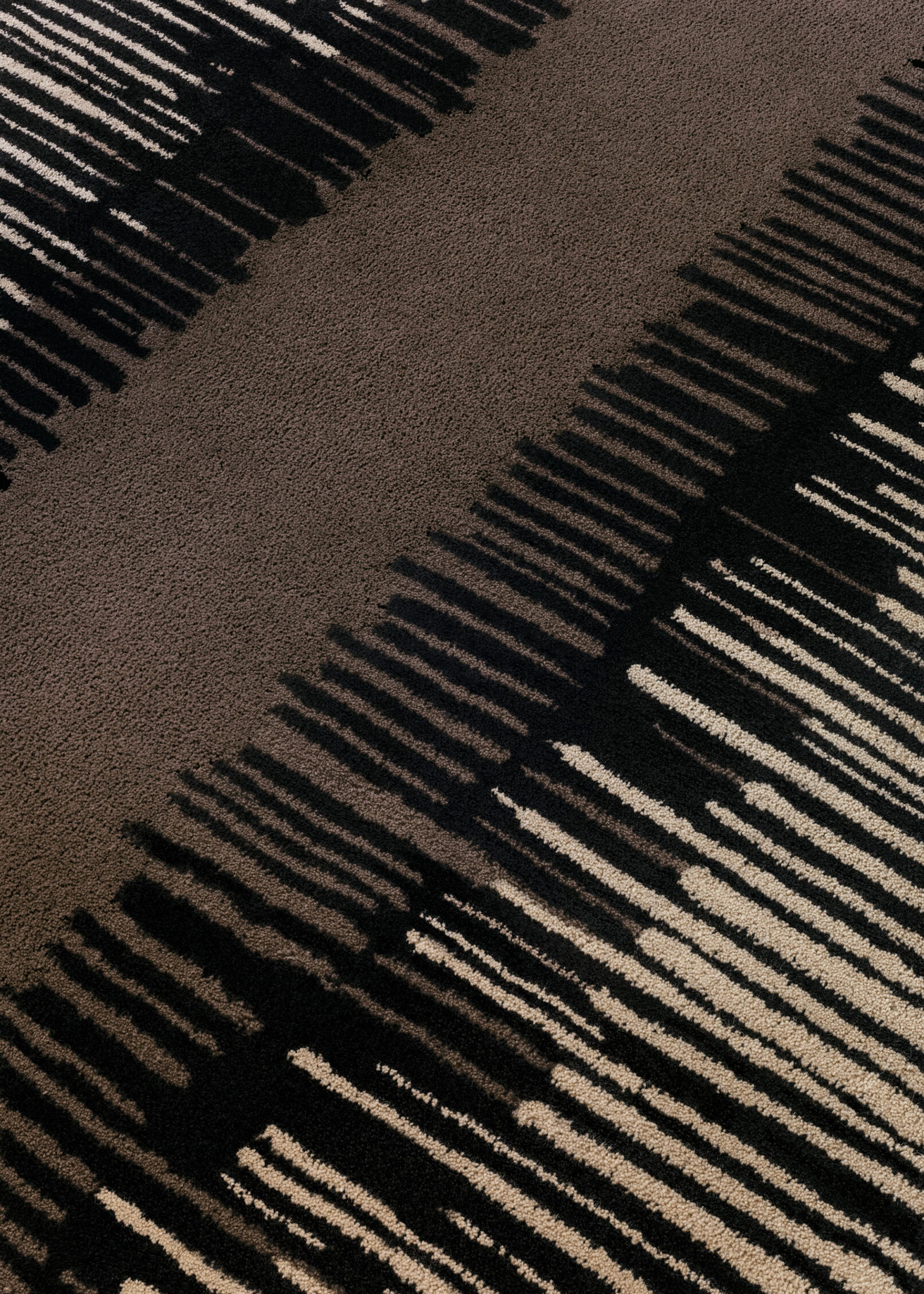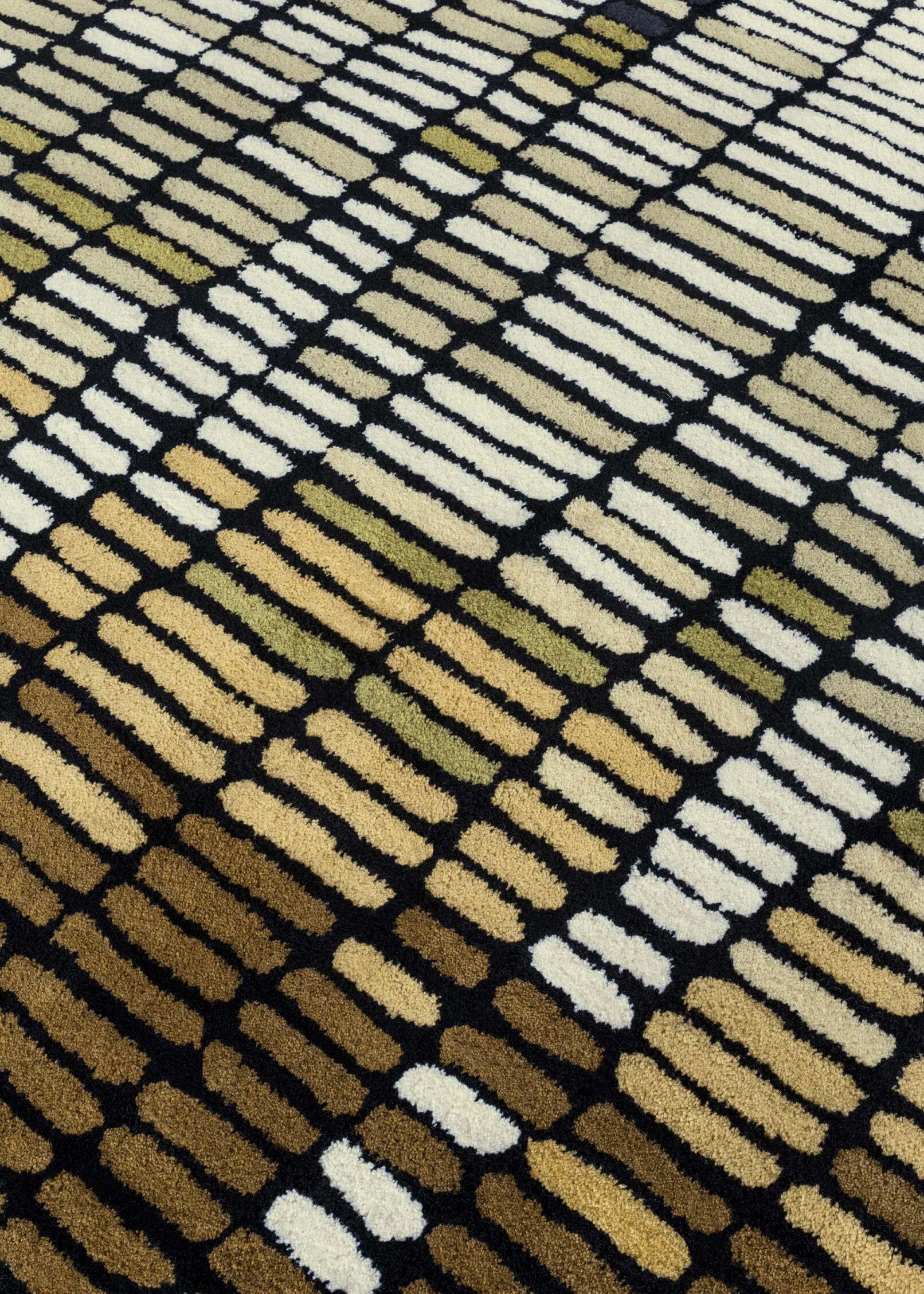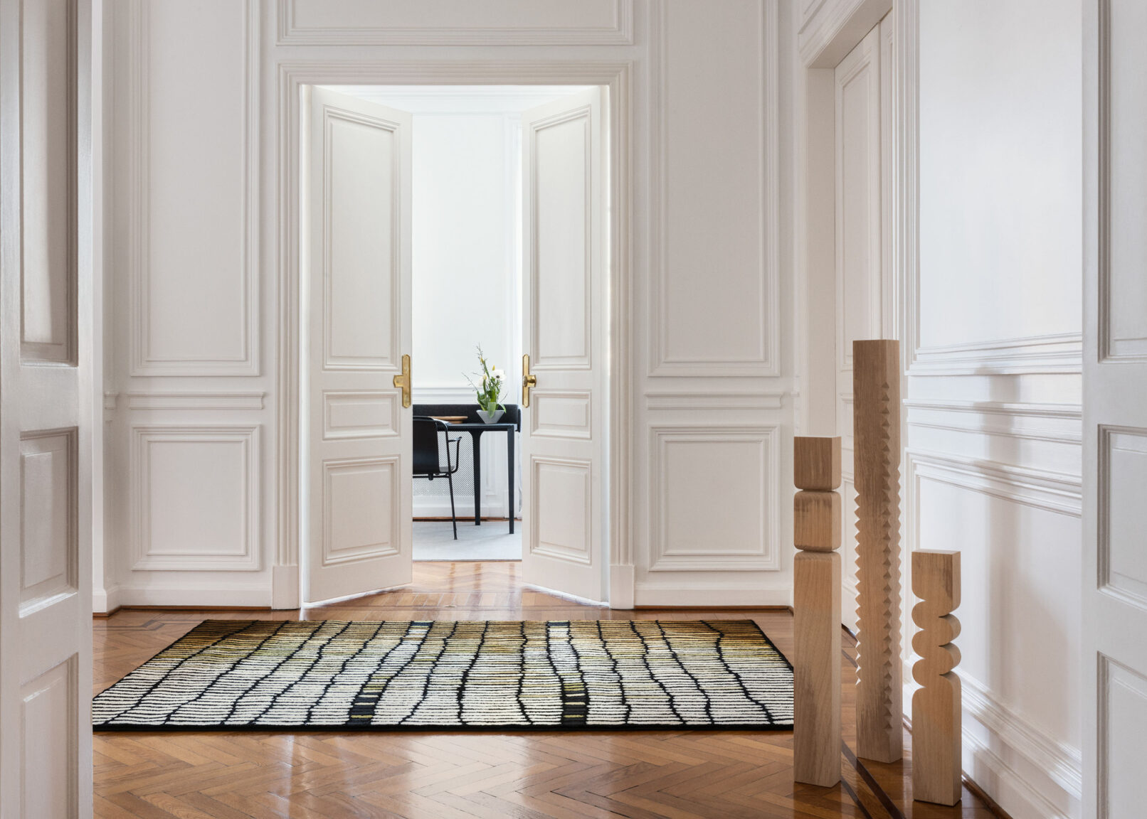 En pura lana, tejidas con el sistema tufting, las carpetas de la colección Africania logran una suave y agradable textura de pelo cortado. Un universo de pájaros en vuelo, piel de cebras y tejidos Kuba, una síntesis y abstracción del arte y la naturaleza del continente que inspiró a sus creadores.