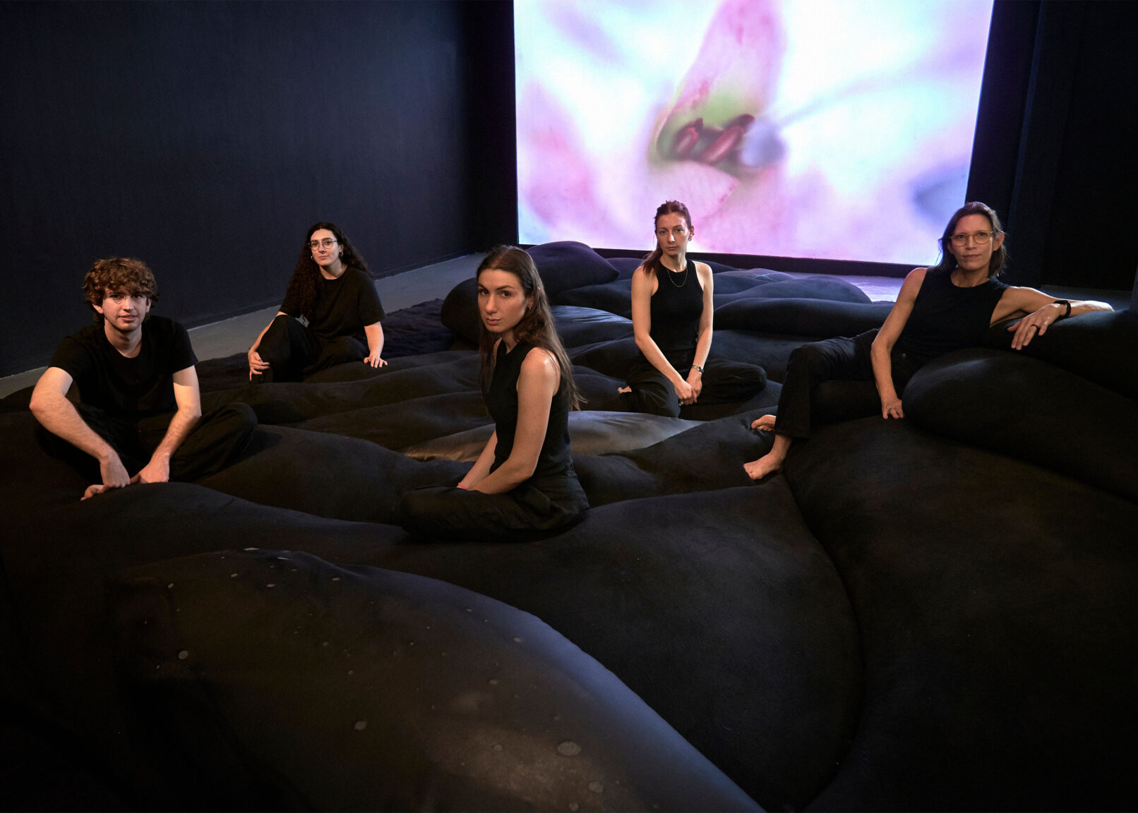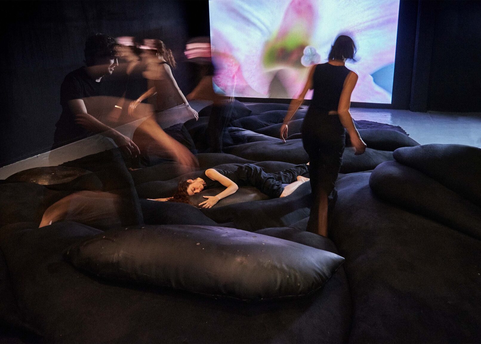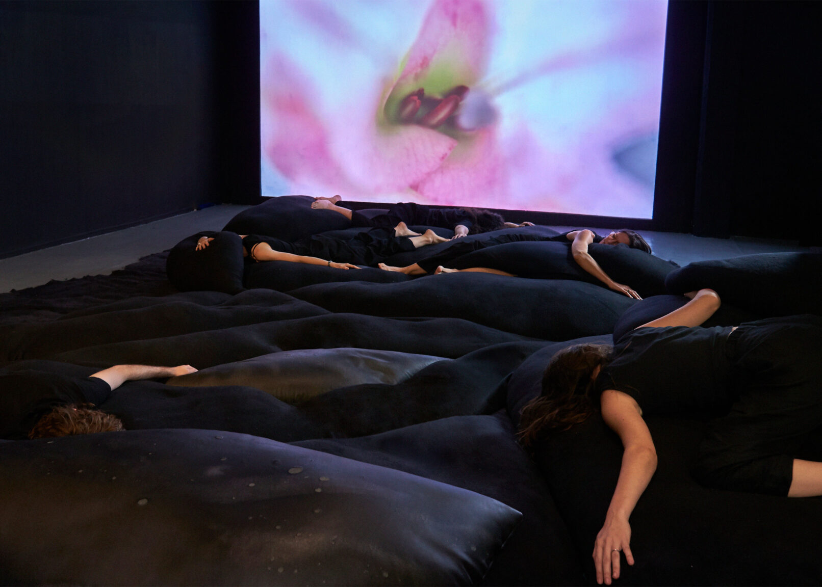 La artista resignificó este material utilizándolo como relleno de una topografía artificial, un “territorio” ergonómico construido a partir de materiales orgánicos biodegradables, como algodón, cáscara de trigo sarraceno y carbón activado. La obra replantea el descanso como una oportunidad de encuentro con el otro, un descanso móvil, conectado y social.