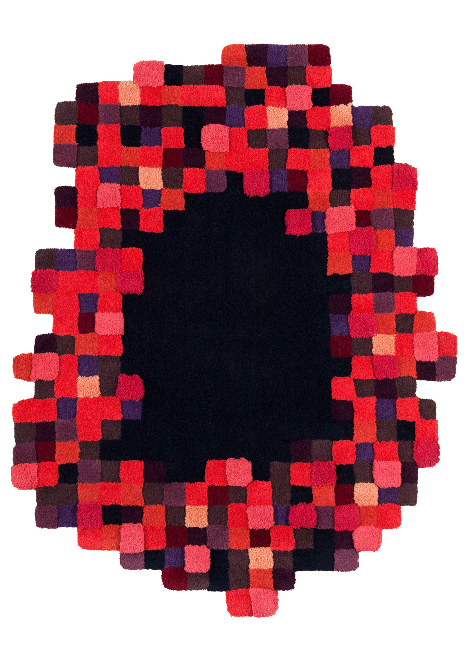 Como su nombre insinúa, este diseño remite a las clásicas guirnaldas florales del pintor flamenco Jan Brueghel El Viejo. Esta original alfombra es tejida artesanalmente con hilados pura lana virgen en una compleja combinación de alturas y formas irregulares que la convierten en un objeto de diseño único.