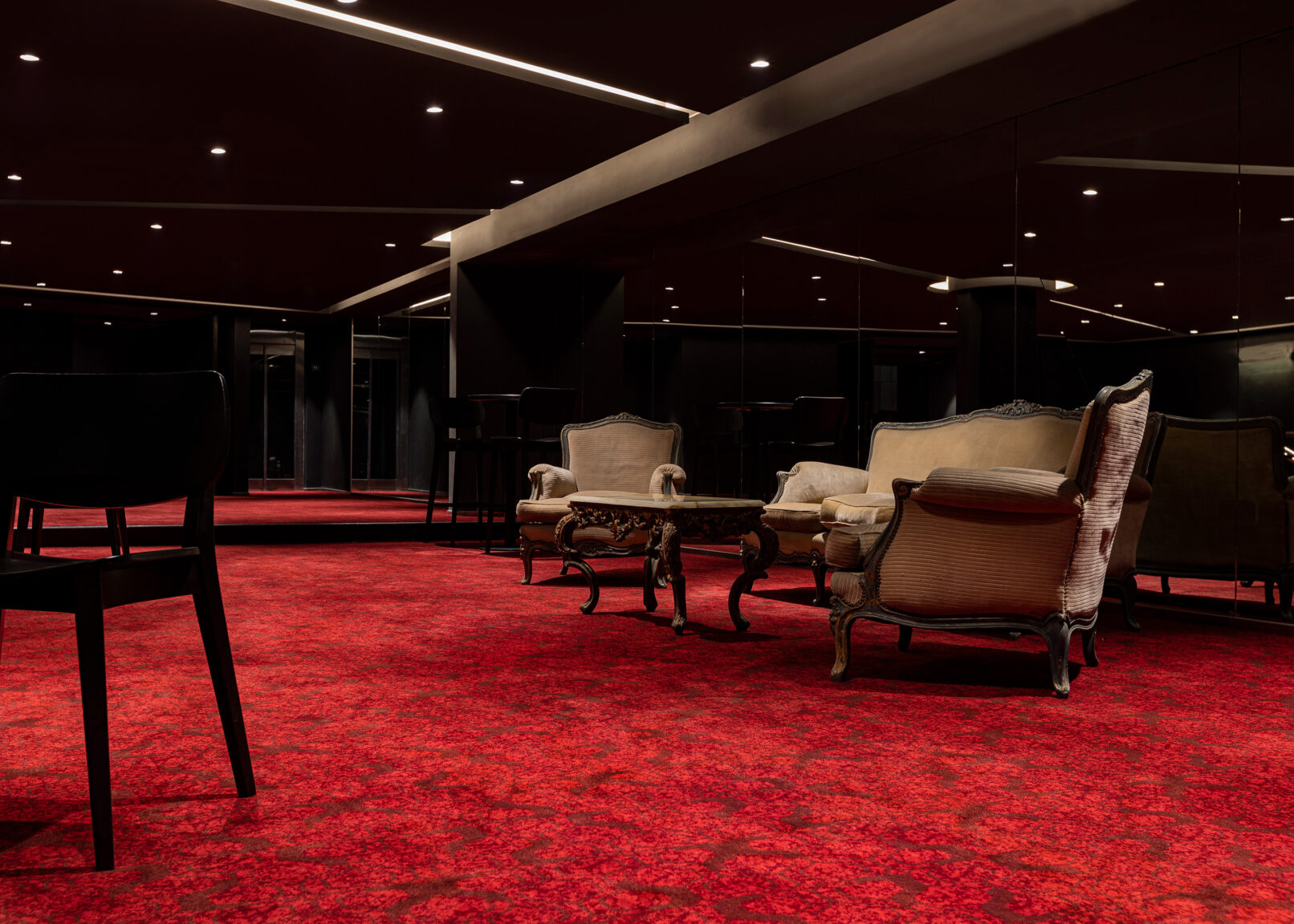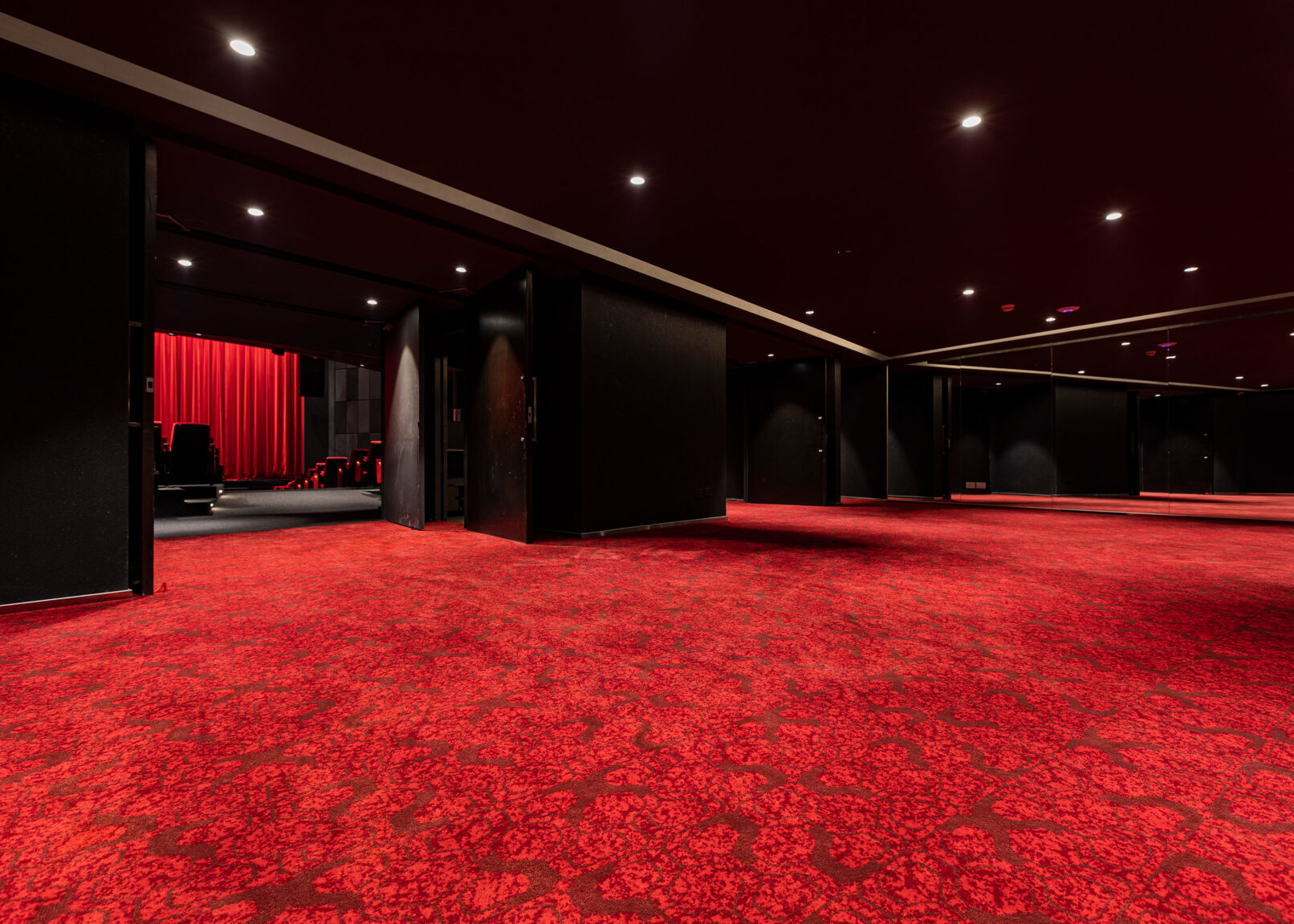 El producto seleccionado para este trabajo fue Magna Colortech Nylon liso en gris y en rojo intenso, ideal para vestir espacios de entretenimiento y alto tránsito.