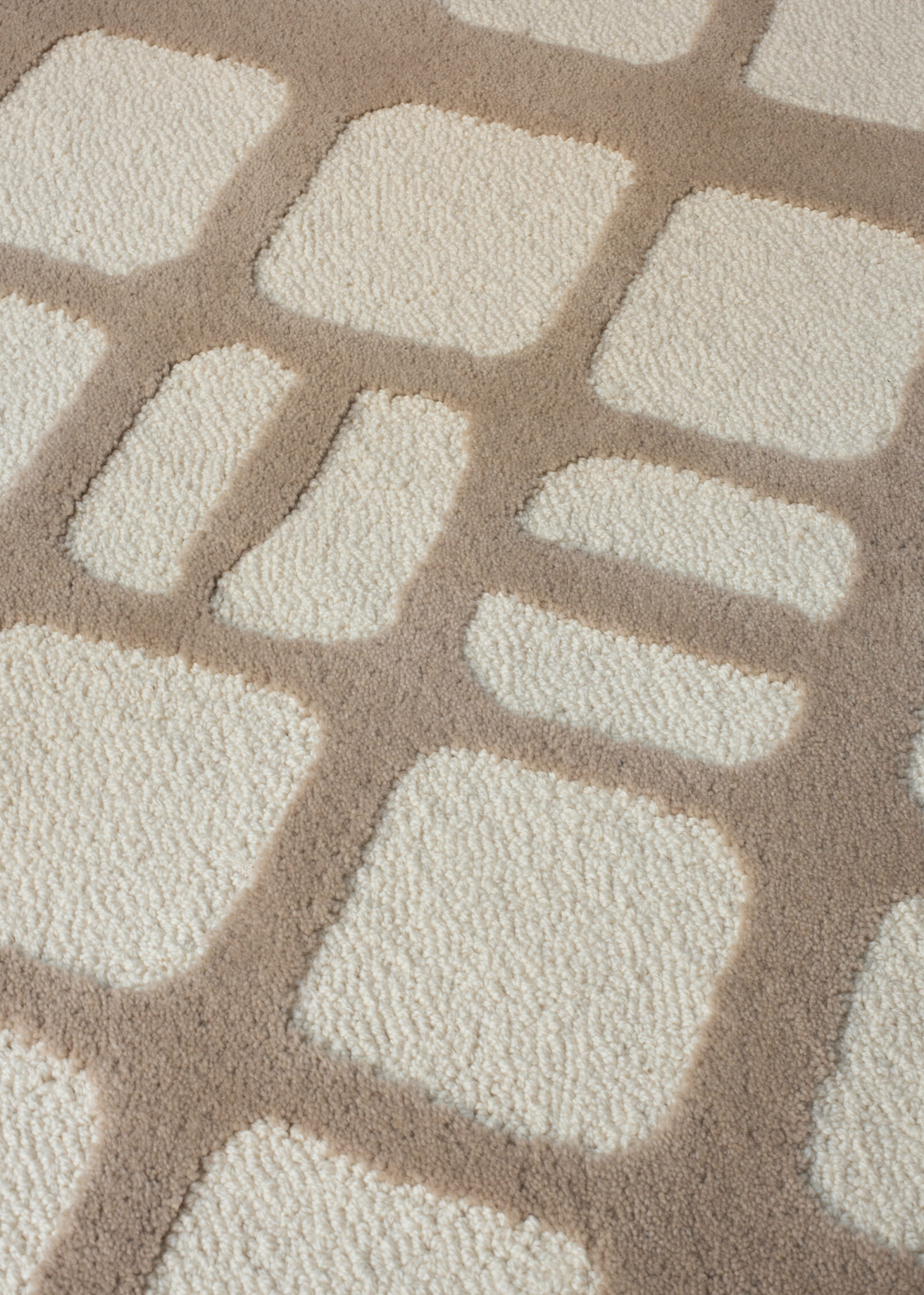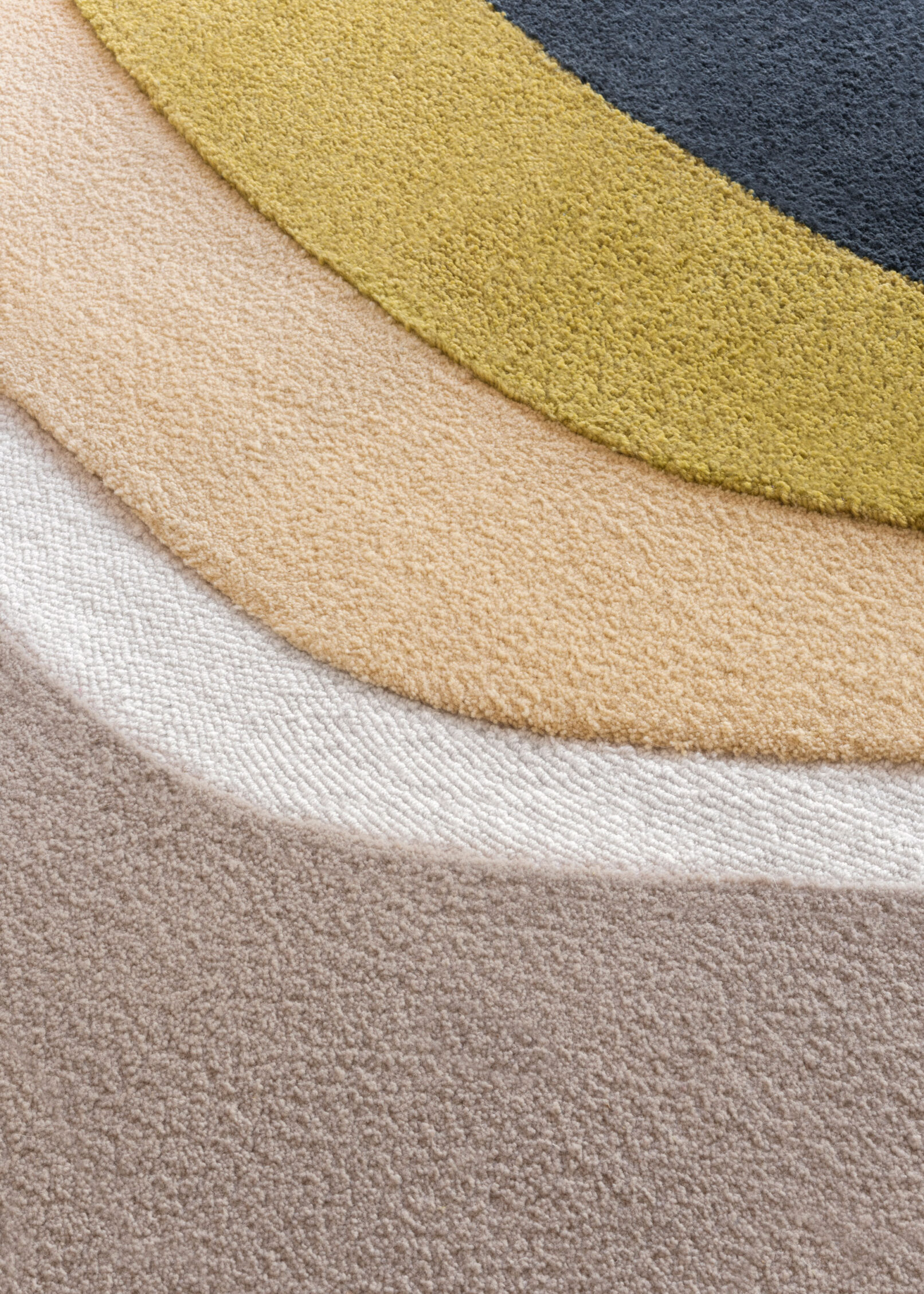 Cada pieza, confeccionada en pura lana, combina texturas de pelo cortado y bouclé. La colección invita a experimentar las ciudades de manera táctil, dejando de lado las pantallas y conectando con el presente.
