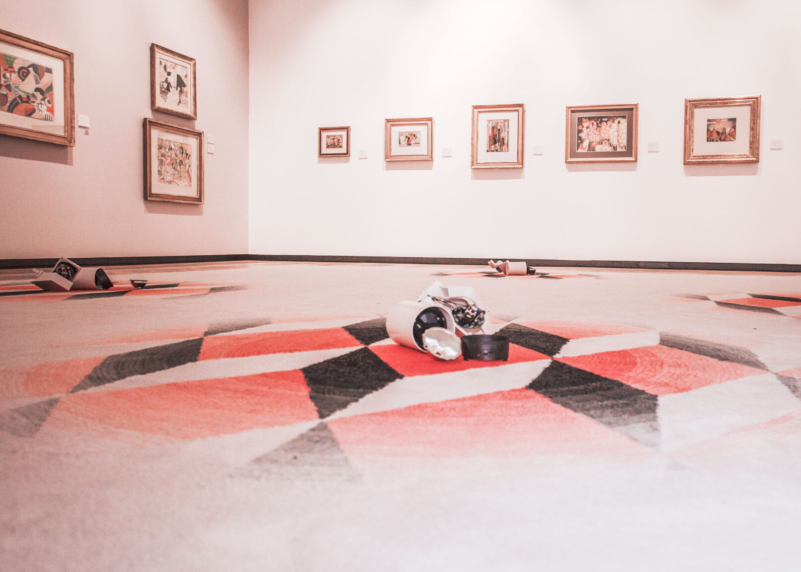 Sobre una alfombra de grandes dimensiones yacen cuatro spots que parecieran haberse caído del techo y destruido. Curiosamente, los cuatro fragmentos iluminados que hubieran generado estos spots sobre la alfombra son lo único que permanece visible de la trama, mientras que el resto parece haberse desvanecido, llevando al espectador a reflexionar sobre la significación y el poder constructivo de la luz, una de la cuestiones centrales de la obra de Macchi. “La noche de los Museos”, el nombre de esta instalación site-specific, fue realizada por Jorge Macchi para la sala Bemberg del Museo Nacional de Bellas Artes de Buenos Aires en el marco de “Perspectiva”, la primera exposición retrospectiva del artista en el país. La alfombra fue desarrollada utilizando una veintena de colores de lana meticulosamente combinados para lograr los complejos efectos de esfumado de la trama.